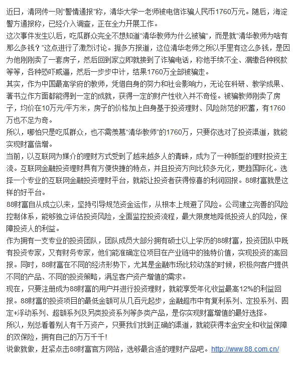 不用羡慕清华老师的千万88财富助你拥有自己的万千