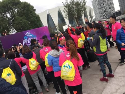 曼塔飞型团和明星一直跑到终点,共同完成了最燃的5公里,