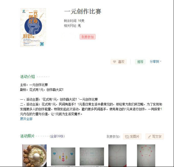 除了大家的讨论外,网友们还专门开了话题讨论“一元钱可以做什么”,大家纷纷留言讨论,还有部分网友兴致高涨的用一元钱做了手工创作作品,上传照片与大家互动。